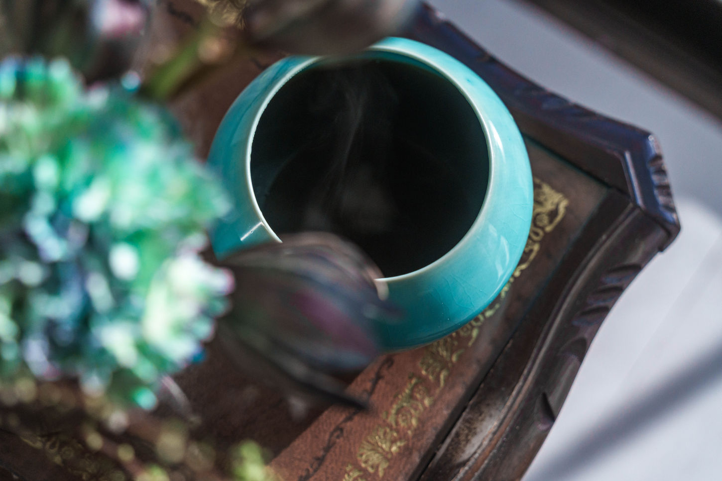 mão(マオン)のコーヒー椀のカラーラインナップには、コーヒーノキが絵付けされたものと、九谷焼の素地である白ものがあります。また同店がポルトガル人のペソア氏をコンセプトにもつことから、ポルトガルの海を想起させる深く綺麗な青色に染めた3種類で展開しました。